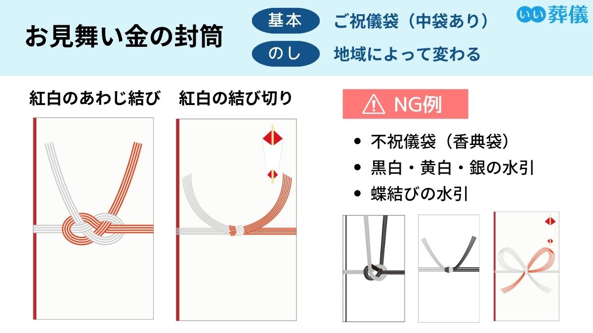 お見舞い金のご祝儀袋にのしをつけるかどうかは、地域や風習によって変わります。
