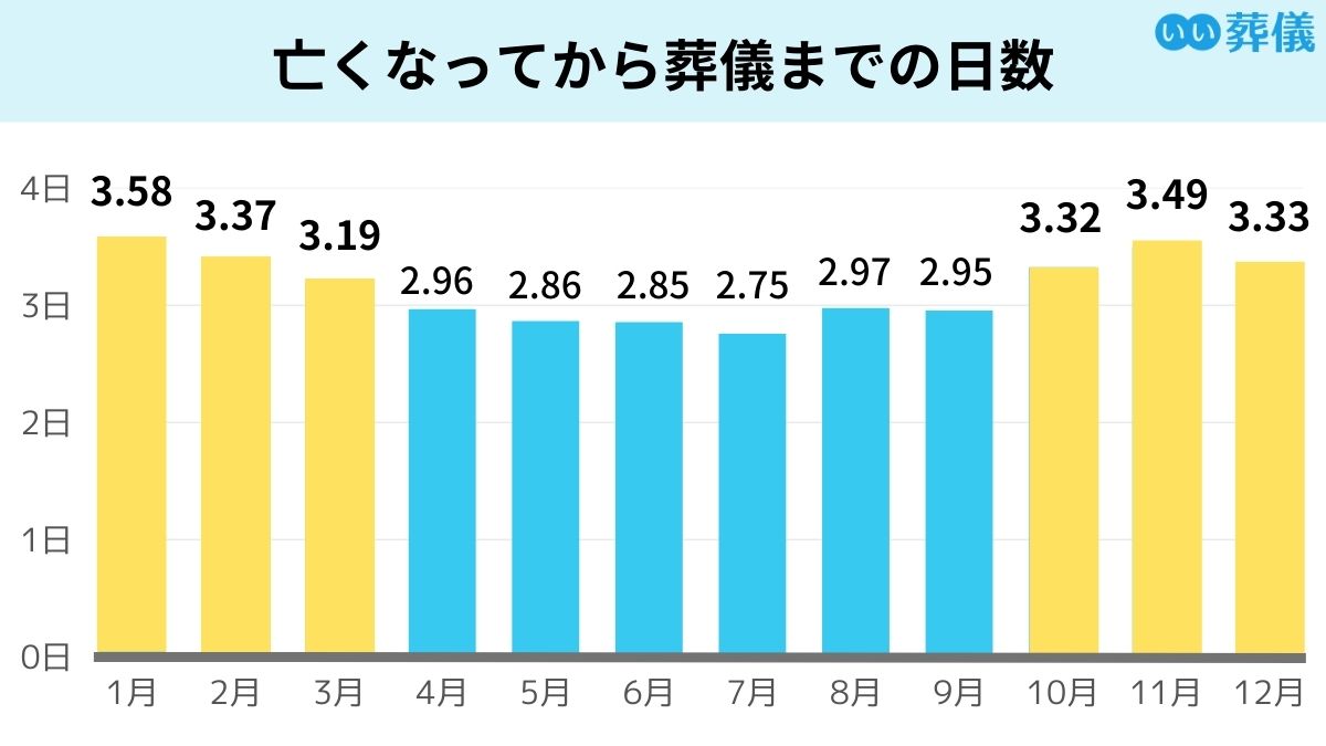 亡くなってから葬儀までの平均日数は3.135日。(鎌倉新書調べ/2019年)